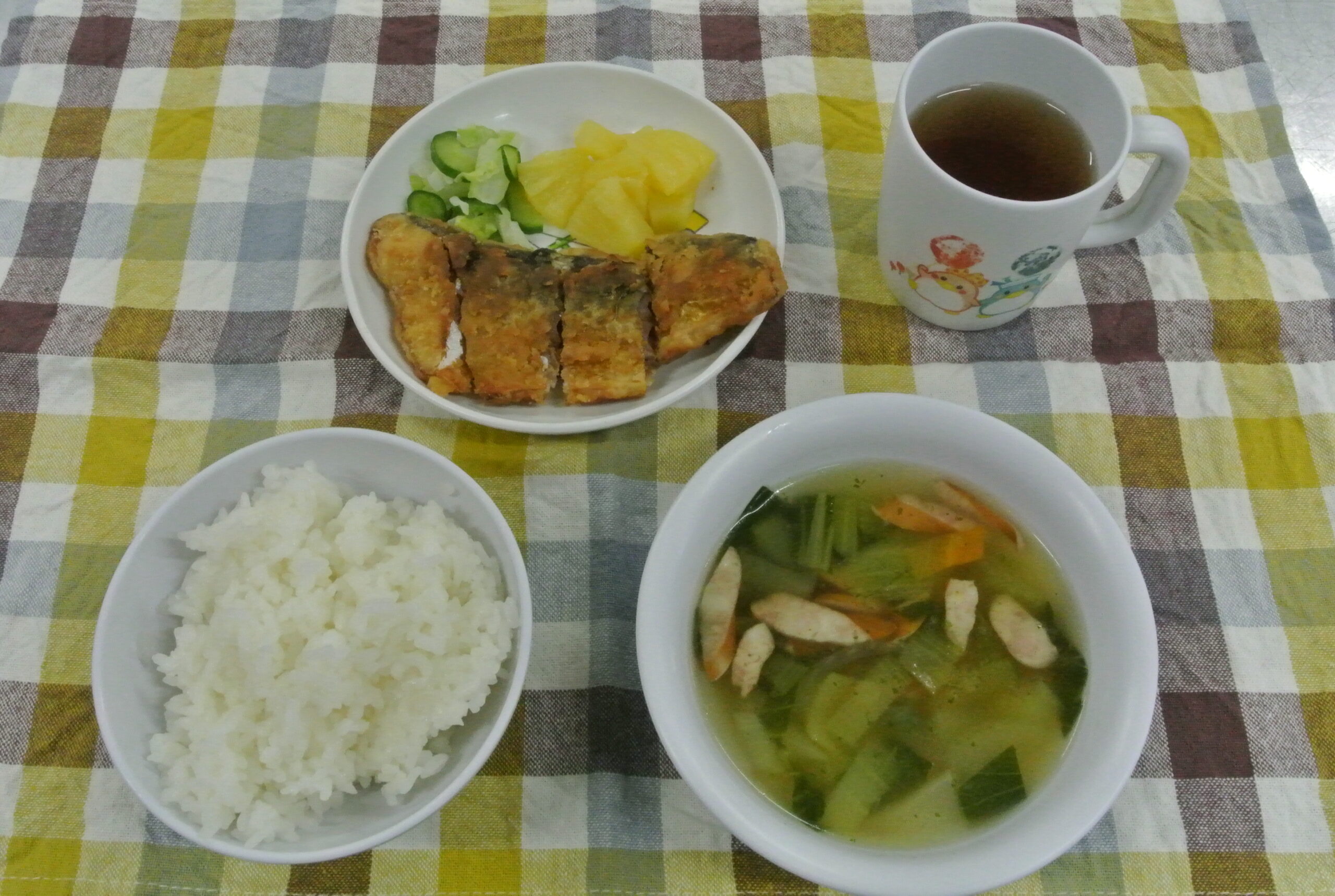 さばの竜田揚げは醬油で味が付いています(^-^)