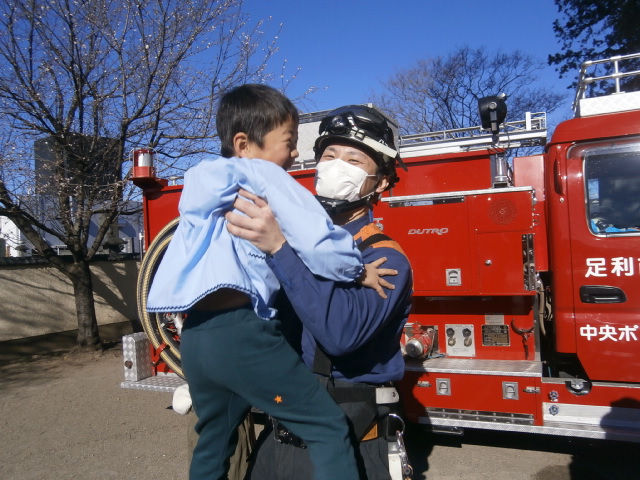 消防士さんに抱っこしてもらい嬉しそうですね(*^-^*)