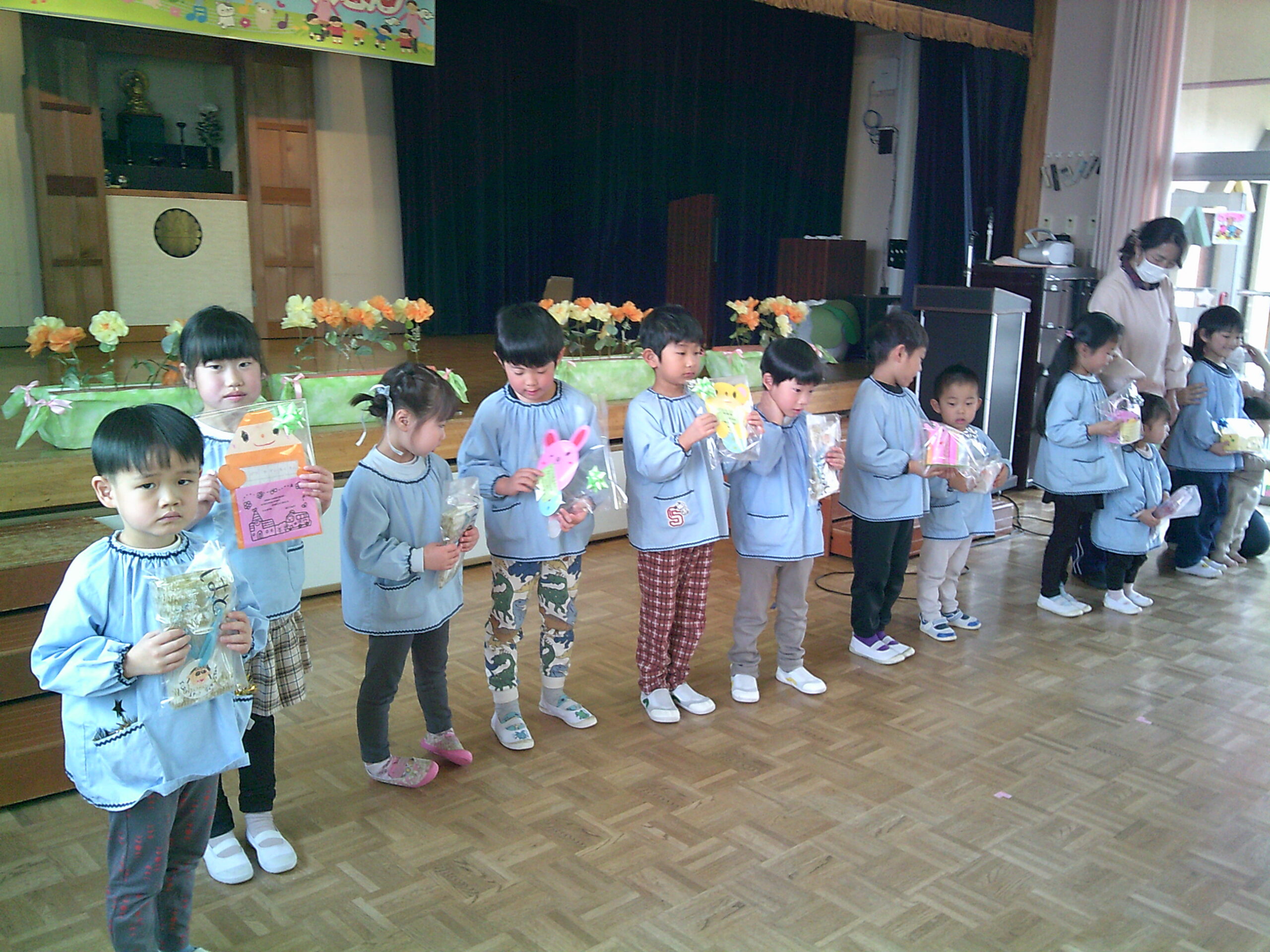 かもめ組のお友達とプレゼント交換しました。似顔絵のキーホルダーをもらいました。お兄さんお姉さん、ありがとう。