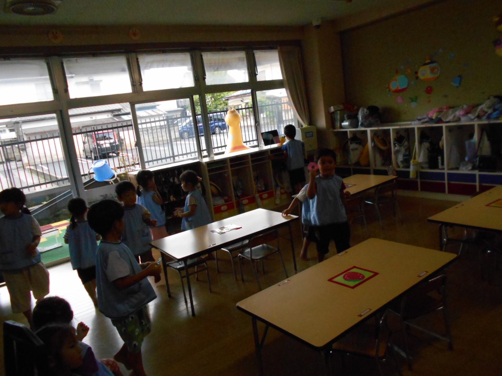午前では宝探しを行いました!保育者が隠した折り紙を探してみんなで探し見つけたら嬉しそうな顔をしていました☺