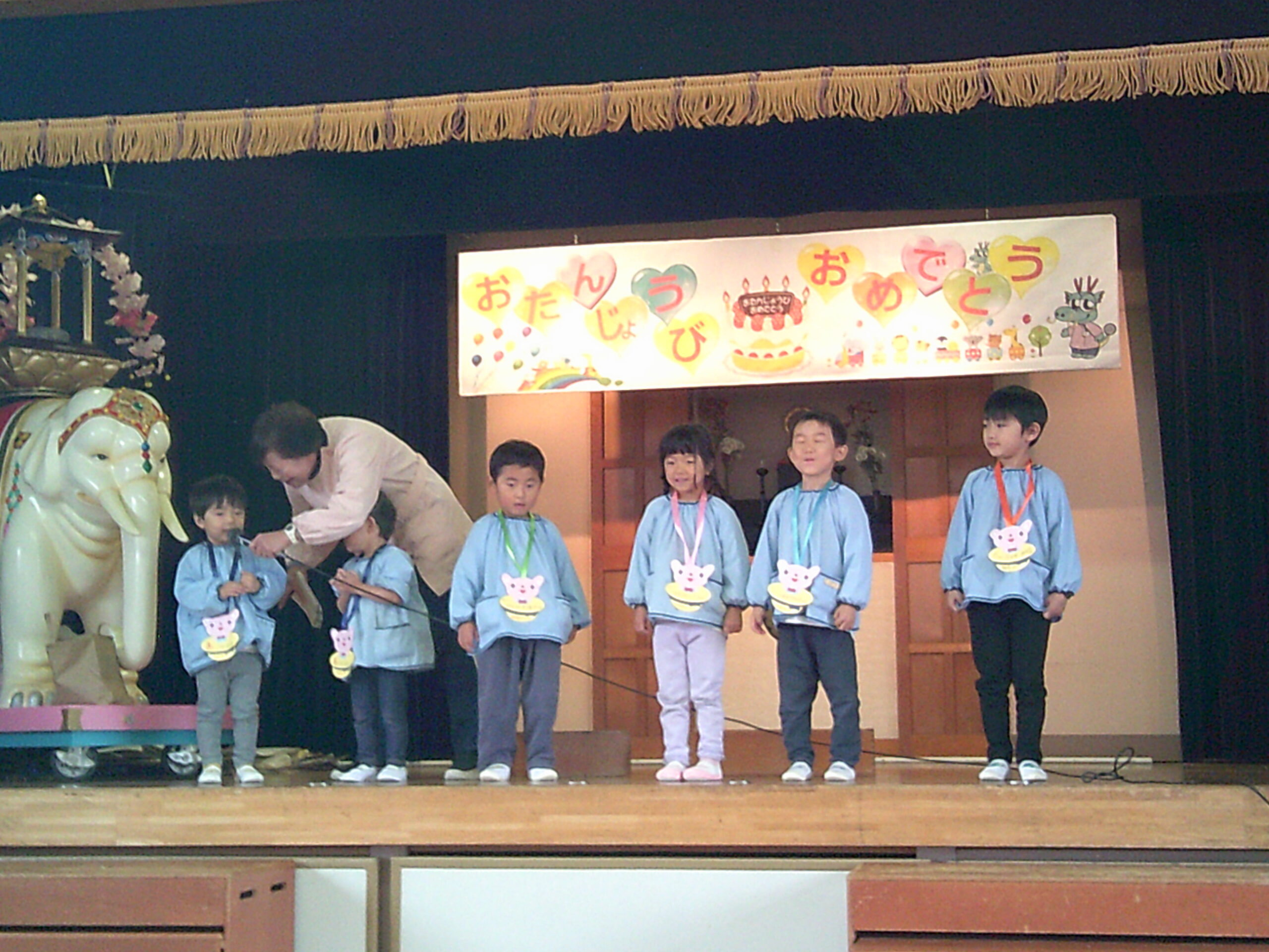 11月生まれの誕生者6人のお祝いをみんなで行いました。みんな大きな声で名前とお友達からのインタビューを答えていました。お誕生日おめでとうございまう🎂