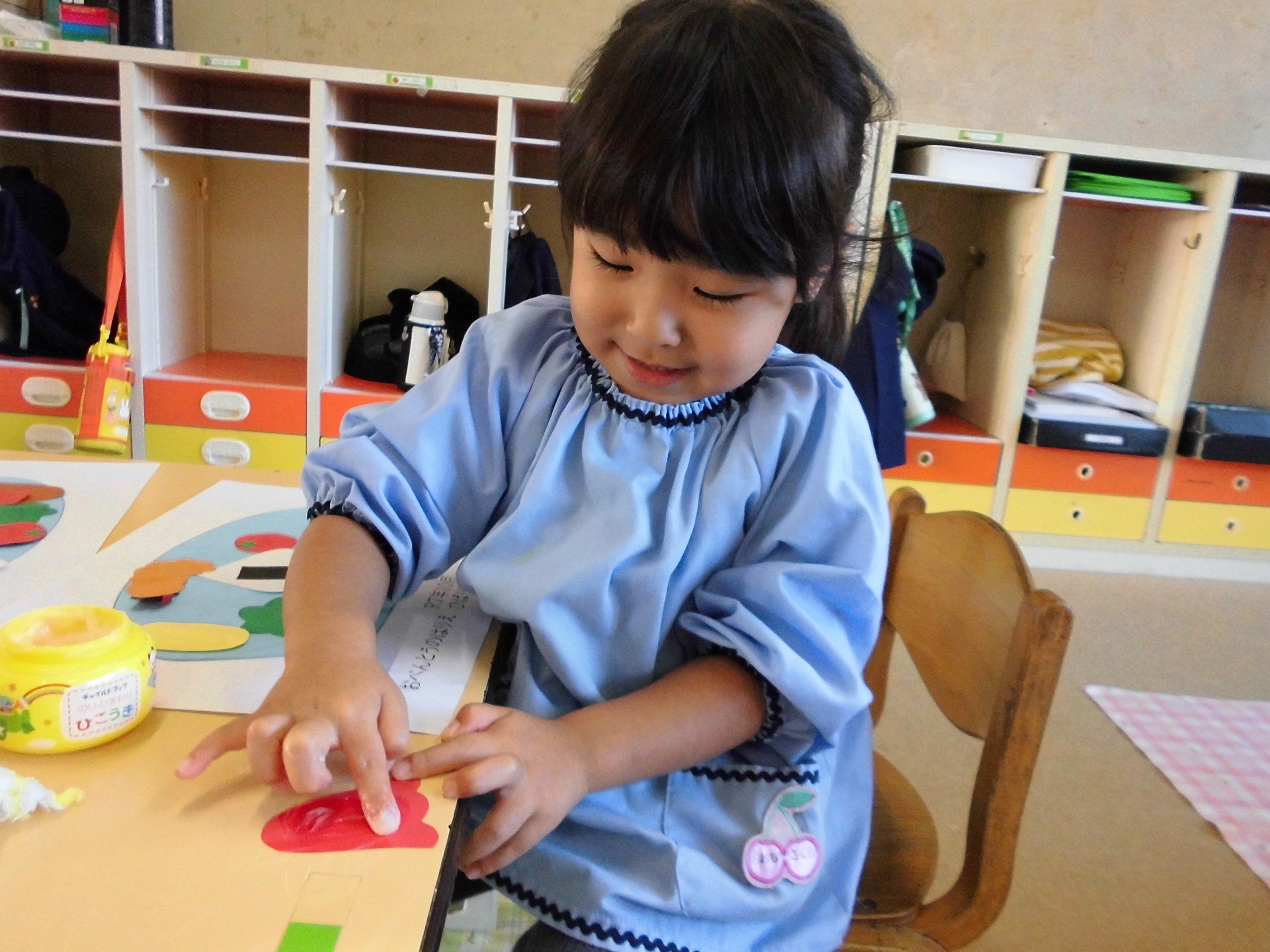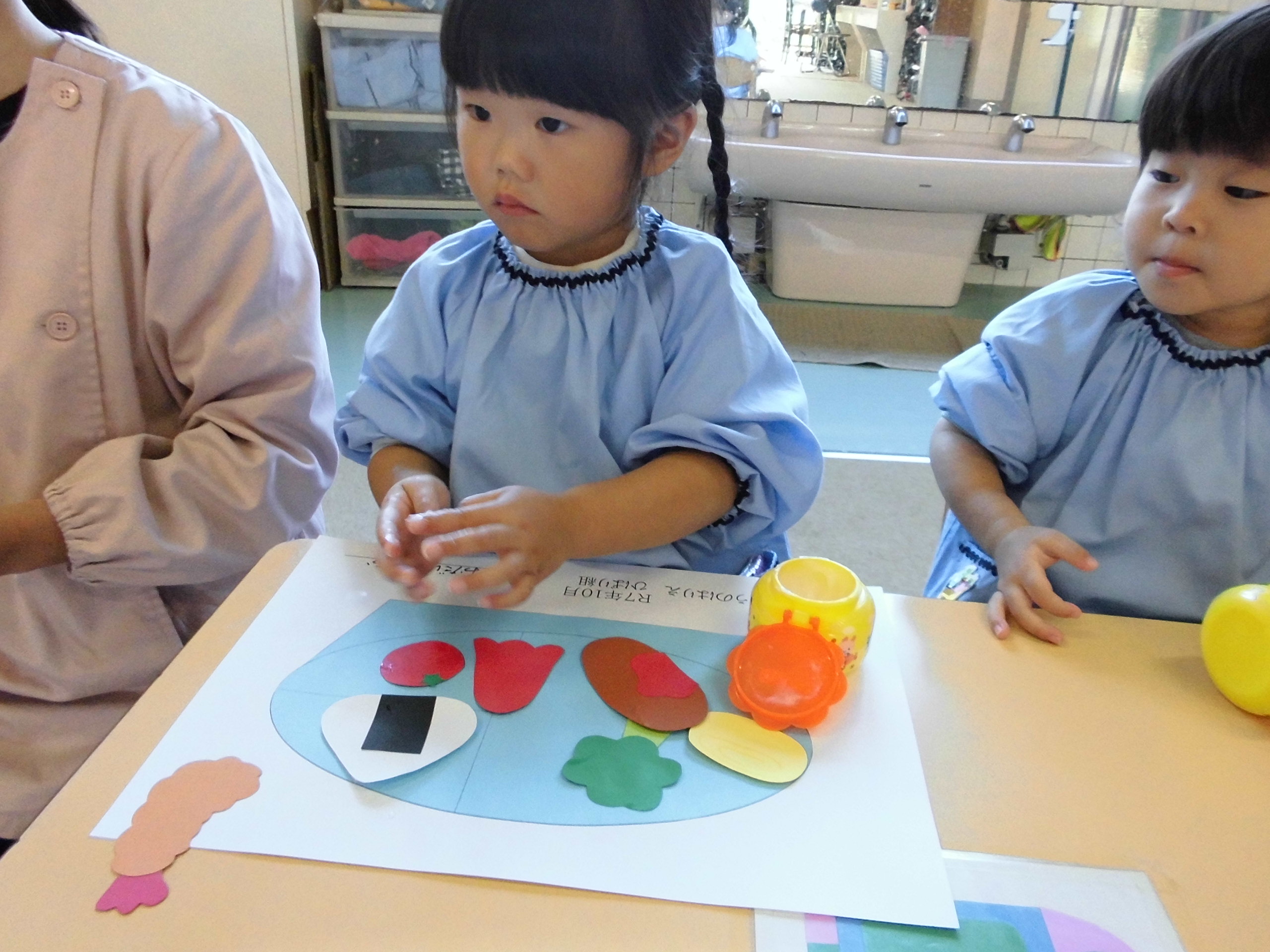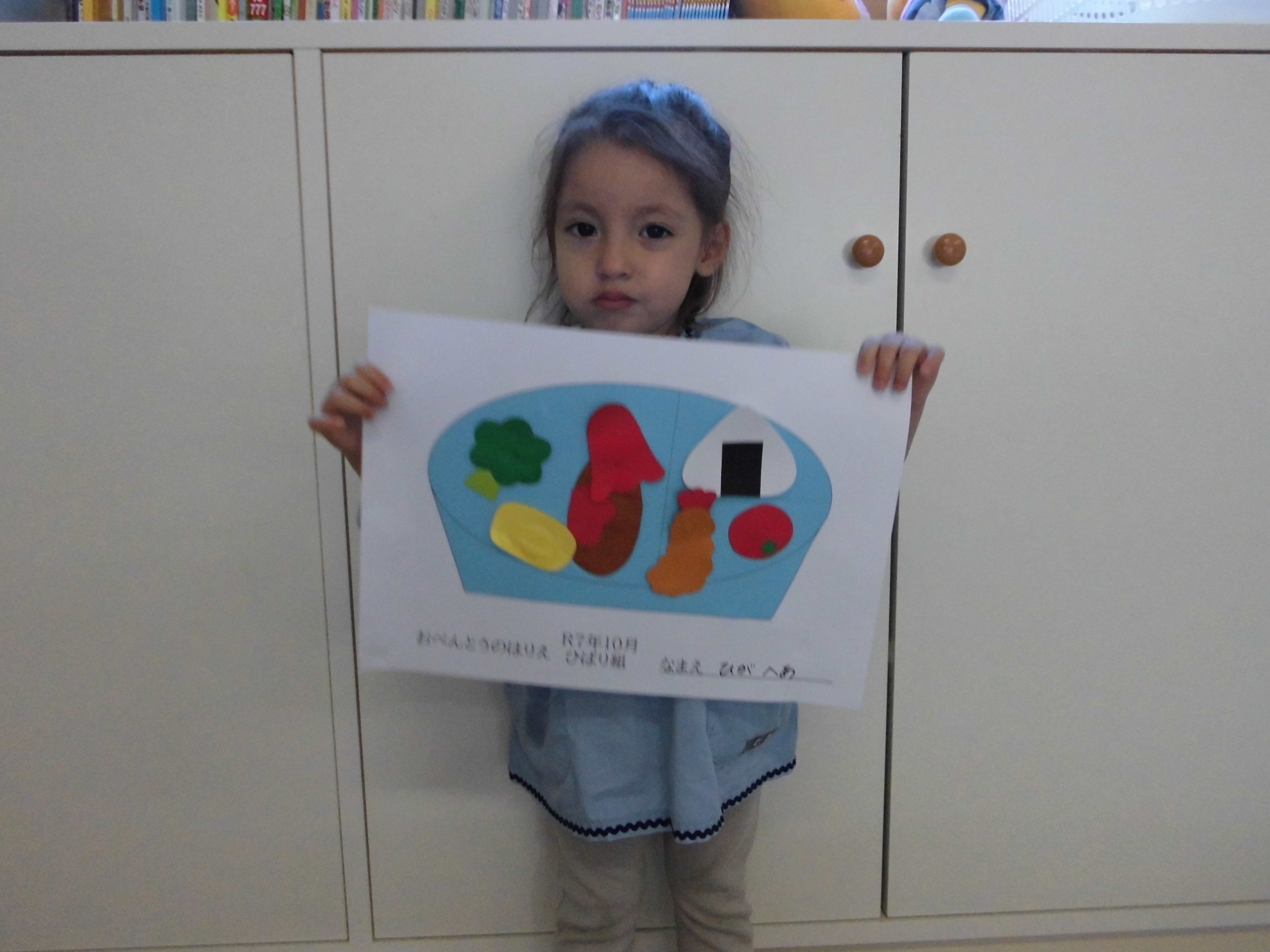 今日はのりを使ったおべんとうの貼り絵制作をしました。とても美味しそうなお弁当ができあがりました(^^♪