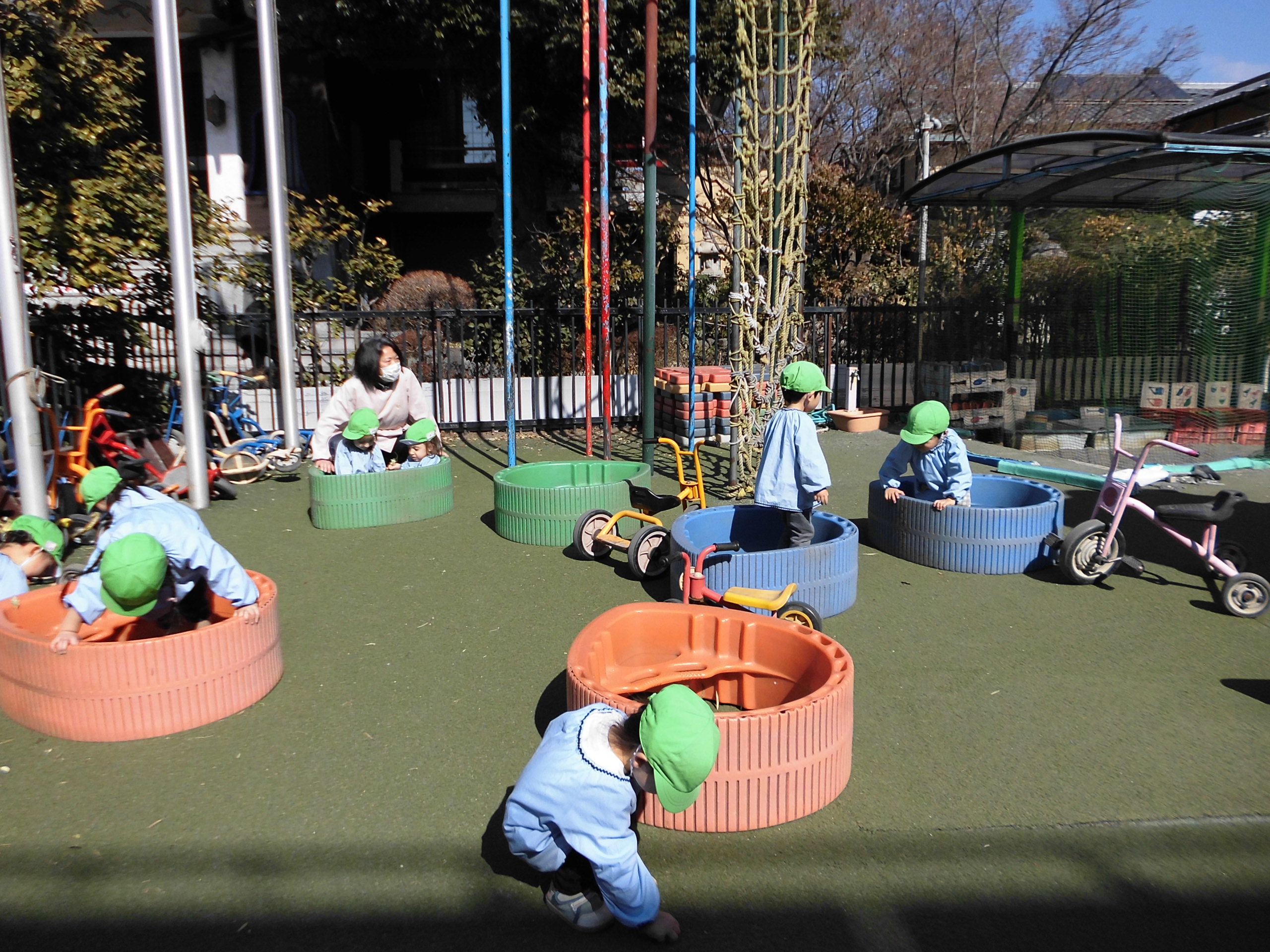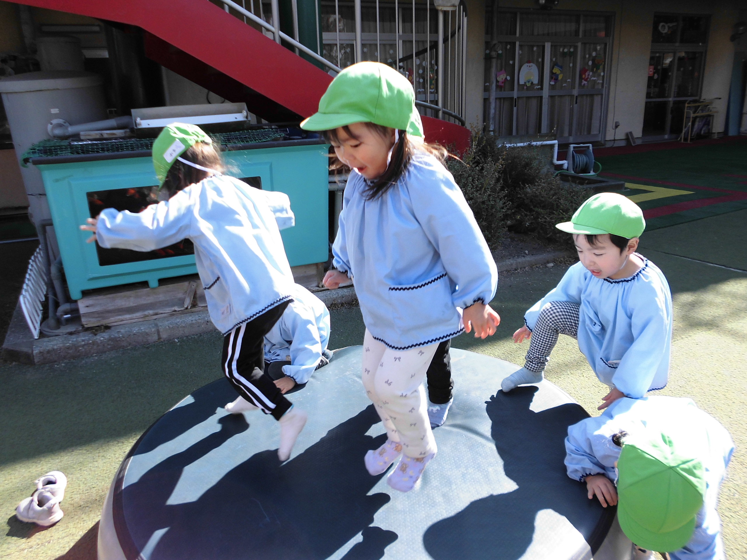 今日も元気なひばり組です。園庭で遊んでいると楽しそうな声と笑顔がいっぱいでした(^O^)/
