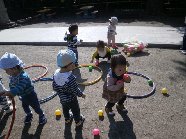 太陽が元気だと子ども達も元気いっぱい!楽しくボールやフラフープで遊んでいます♪