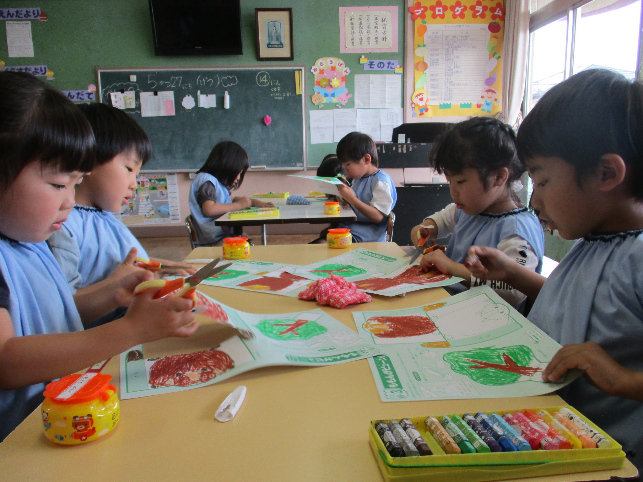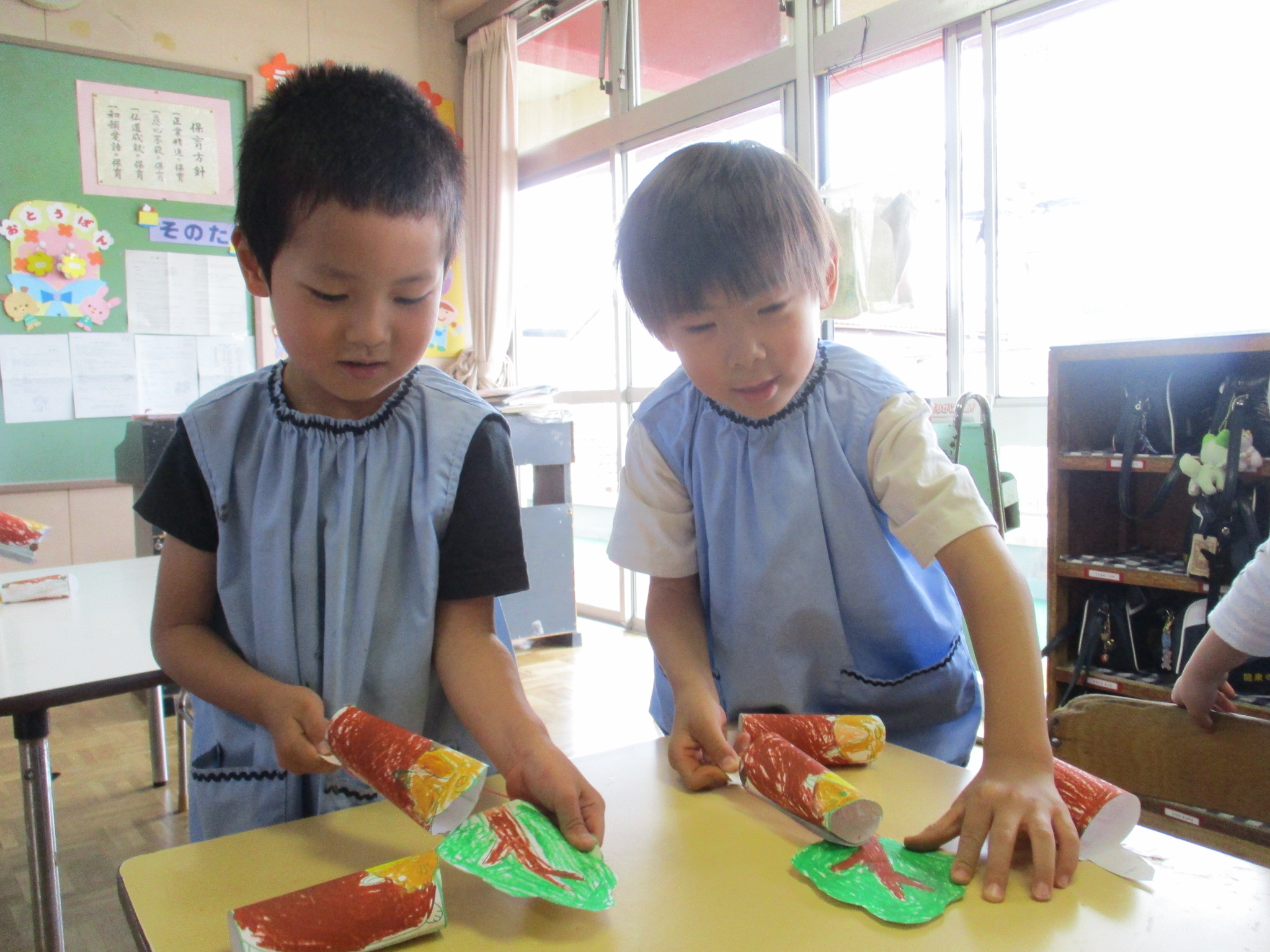 ももんがって?と図鑑で調べるお友達の姿も…。出来上がると楽しく遊ぶ様子が見られました。