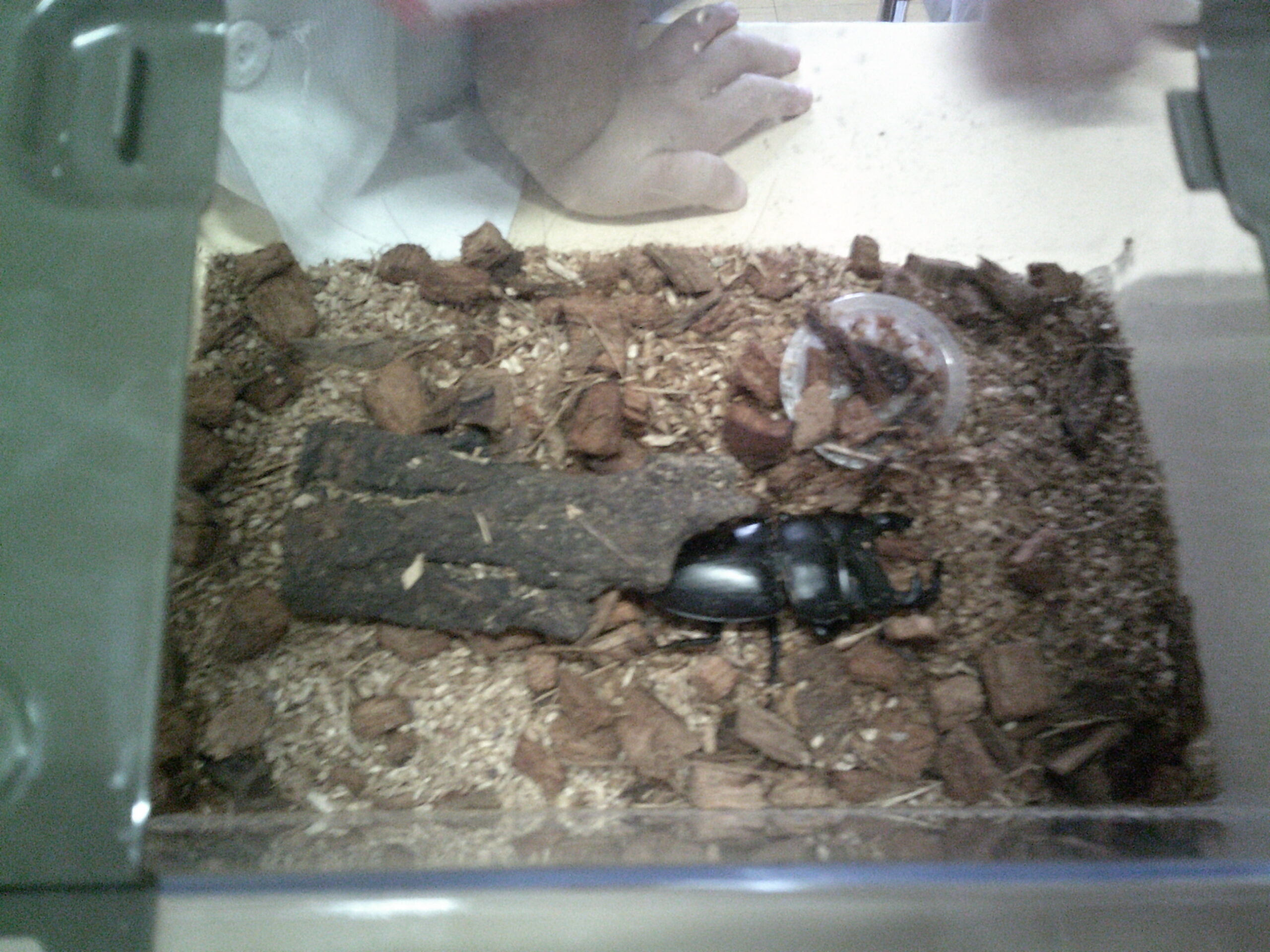 お部屋にクワガタが来ました。「かっこいい~」「すご~い」たくさんの声が聞こえました。