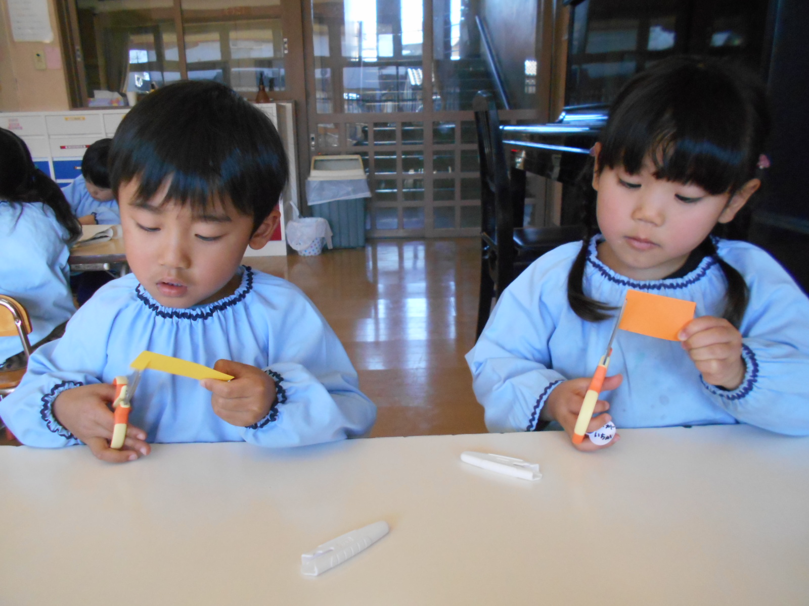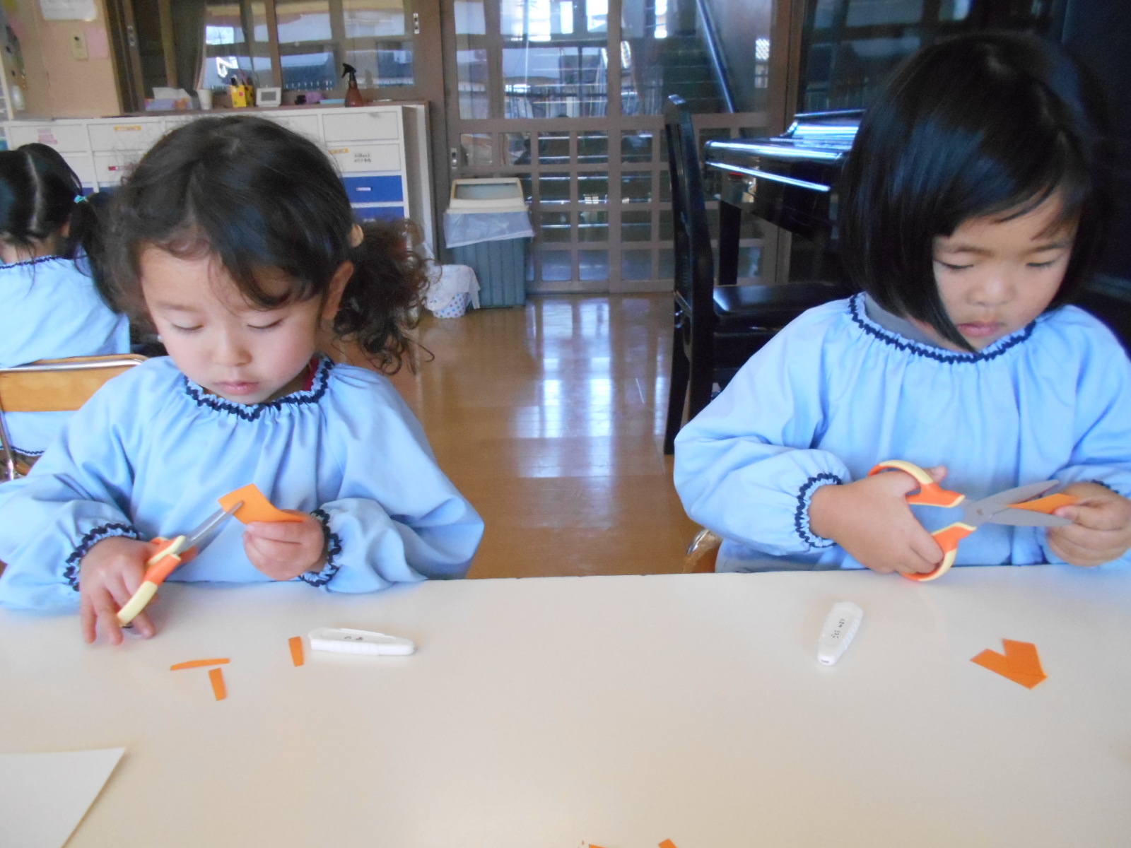 はさみの練習を行いました!きちんとはさみを持ち、直線切りを行うことが出来ました♥