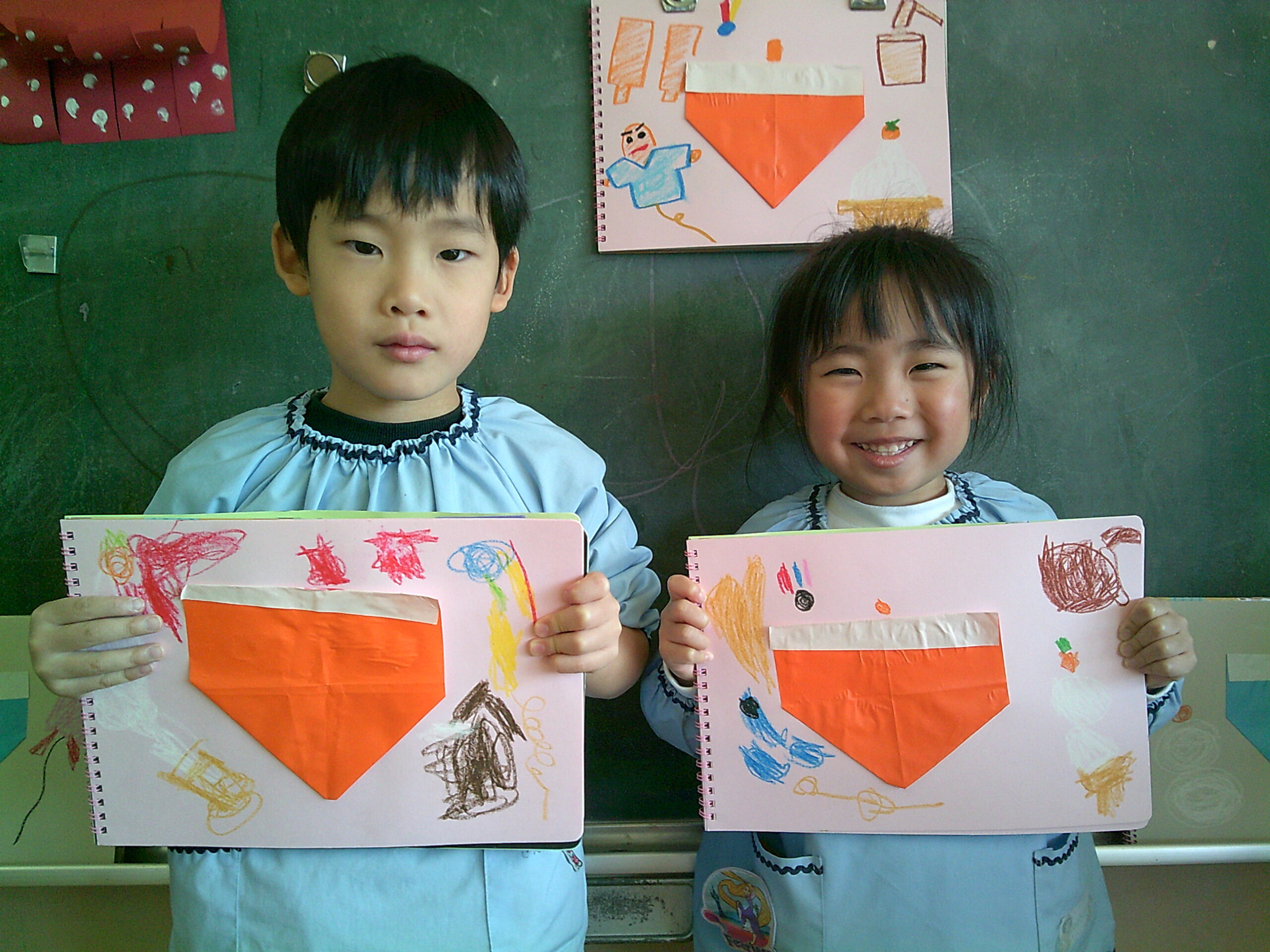たこを描いたり、羽子板やみかんなどお正月の楽しかった思い出をお話ししながら描きました。