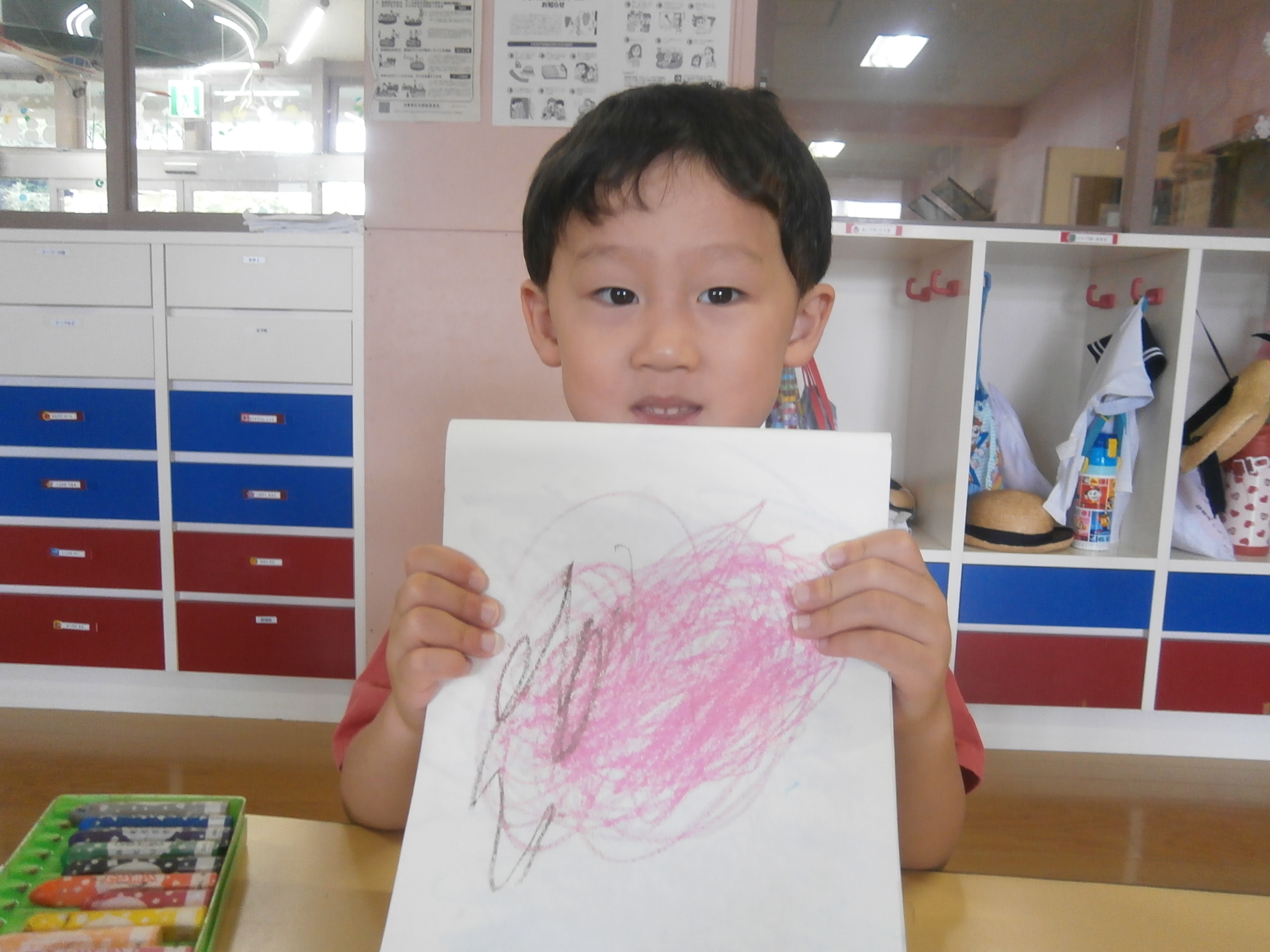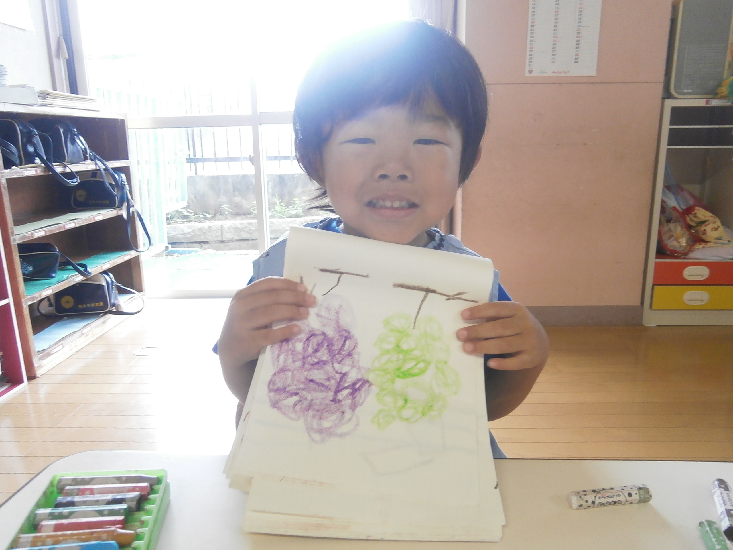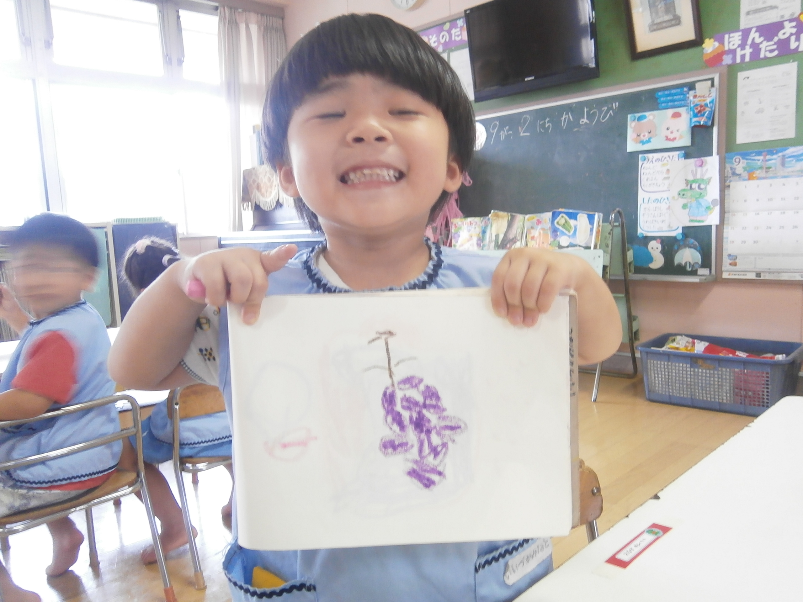果物の美味しい季節ですね。イメージした物を形にして描ける子が増えてきました。みんな、上手に描けていますね。